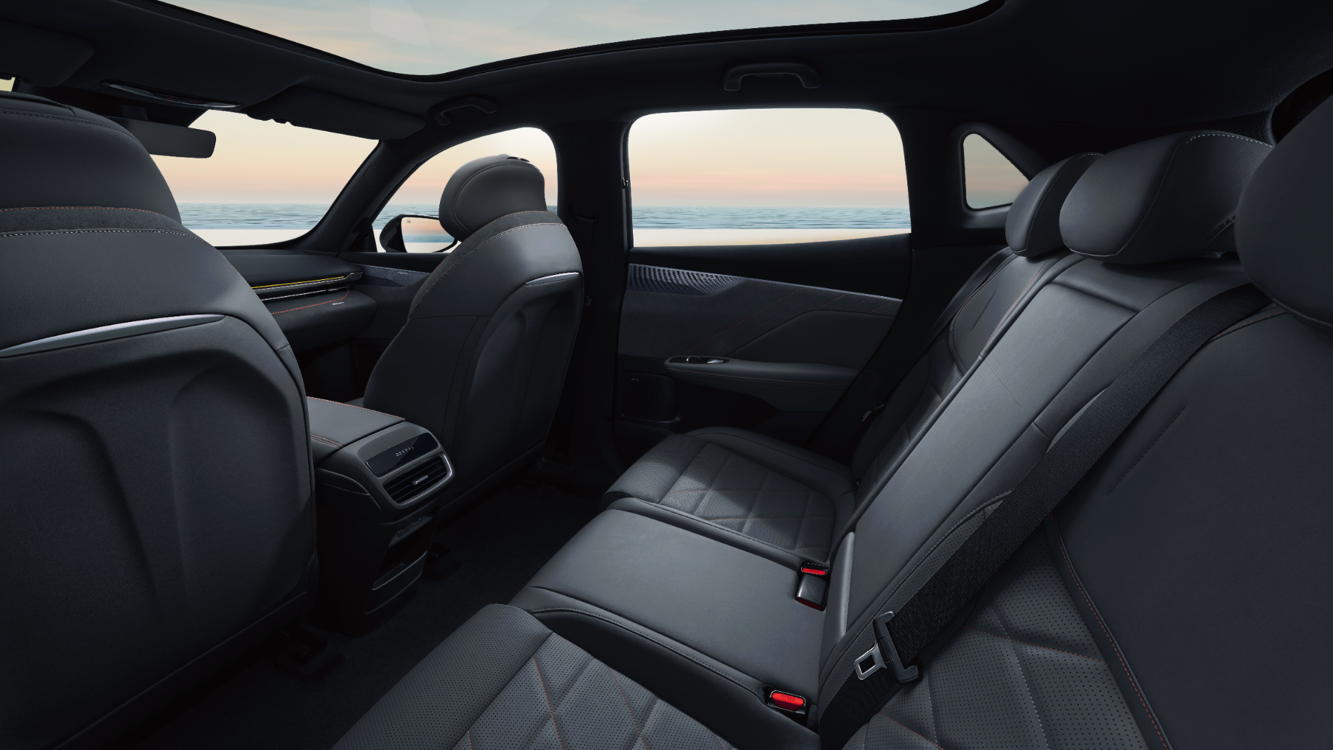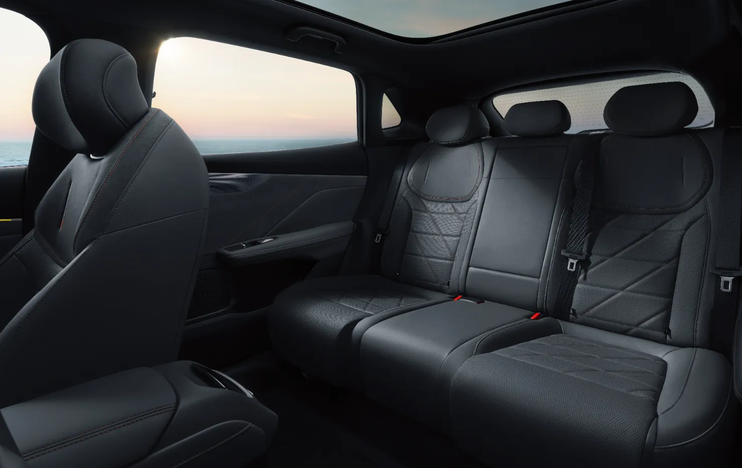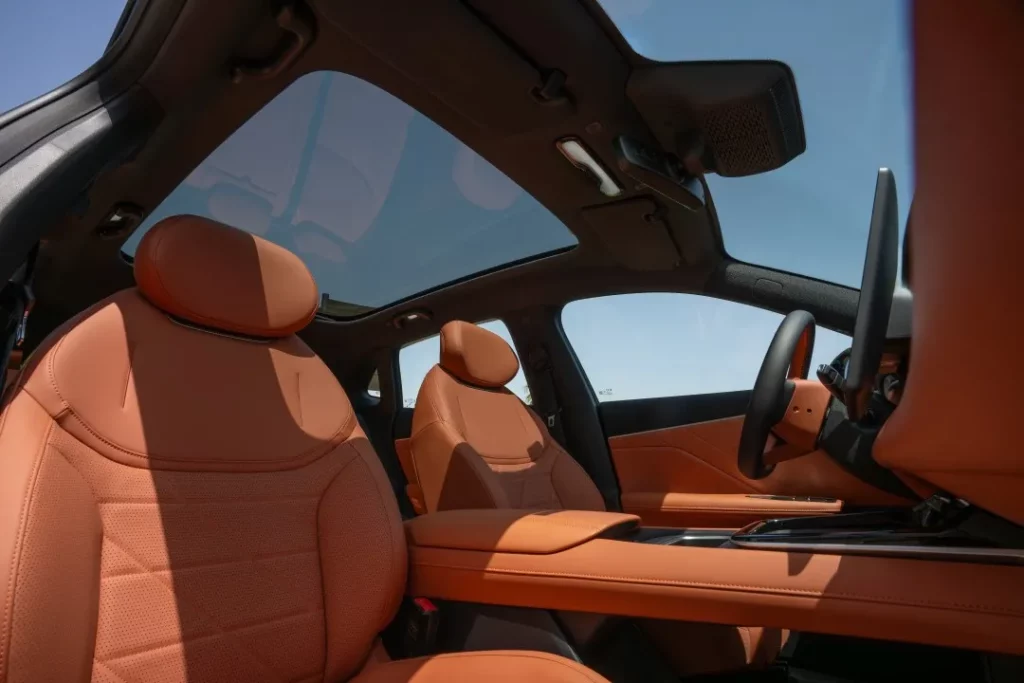 Toit panoramique de 1,9 m² qui ouvre l’habitacle sur le ciel. La lumière naturelle envahit l’espace, accentuant la sensation de liberté.