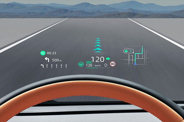 Indications de navigation, limitations de vitesse et informations clés projetées en temps réel directement sur le pare-brise.